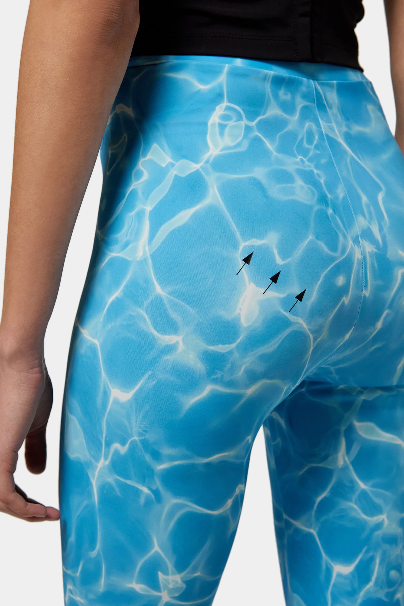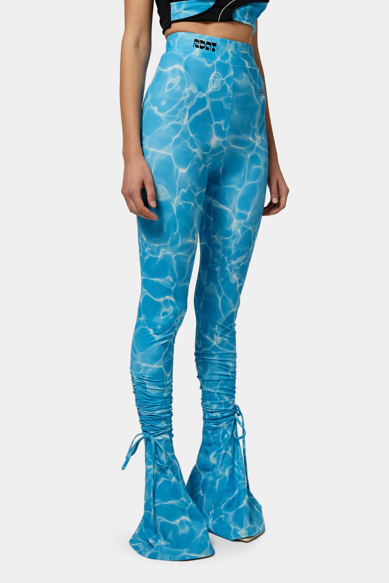 Women's leggings are back in trend and gain even more popularity than ever before. When choosing this item, it is important to take into account the features of the figure in order to correctly emphasize its highlights. The new collection features blue leggings embellished with designer elements. The item differs from the standard version with an extended cut at the bottom and side lacing. The latter detail creates decorative folds. A form-fitting shape that fits snugly, and a high waistline with an elastic. In an online designer clothing store, you can buy high-waisted leggings with a textured print, as well as choose other colors from the assortment.